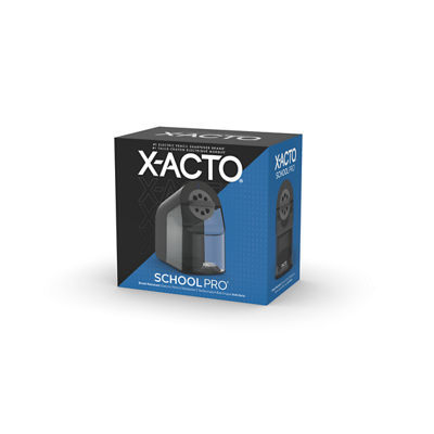 The break-resistant X-ACTO® School Pro® Pencil Sharpener lets students spend less time sharpening and more time focusing on what matters. This electric pencil sharpener gets woodcase pencils to a precise tip, so there’s less lead breakage and less distractions in the classroom. The flyaway cutter stops sharpening when a pencil has reached its ideal sharpness. Meanwhile, the SafeStart® electric motor stops when the extra-large, easy-to-empty shavings bin is removed. The slip-resistant bottom keeps the pencil sharpener steady. Finally, a six-size dial fits nearly every pencil and the printed indicators provide an ease of use. It’s also compatible with coloured pencils. Stay sharp with X-ACTO®, the #1 electric pencil sharpener brand!